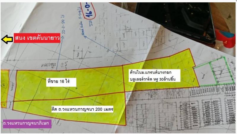ขายที่ดิน16 ไร่ เป็นแปลงลงทุนติดวงแหวนกาญจนาภิเษกยาว 200 เมตร บริเวณจุดสังเกตสำนักงานเขตคันนายาวทำเลดี ใกล้แฟชั่นทำเลเยี่ยมหายากที่จะมีออกมา