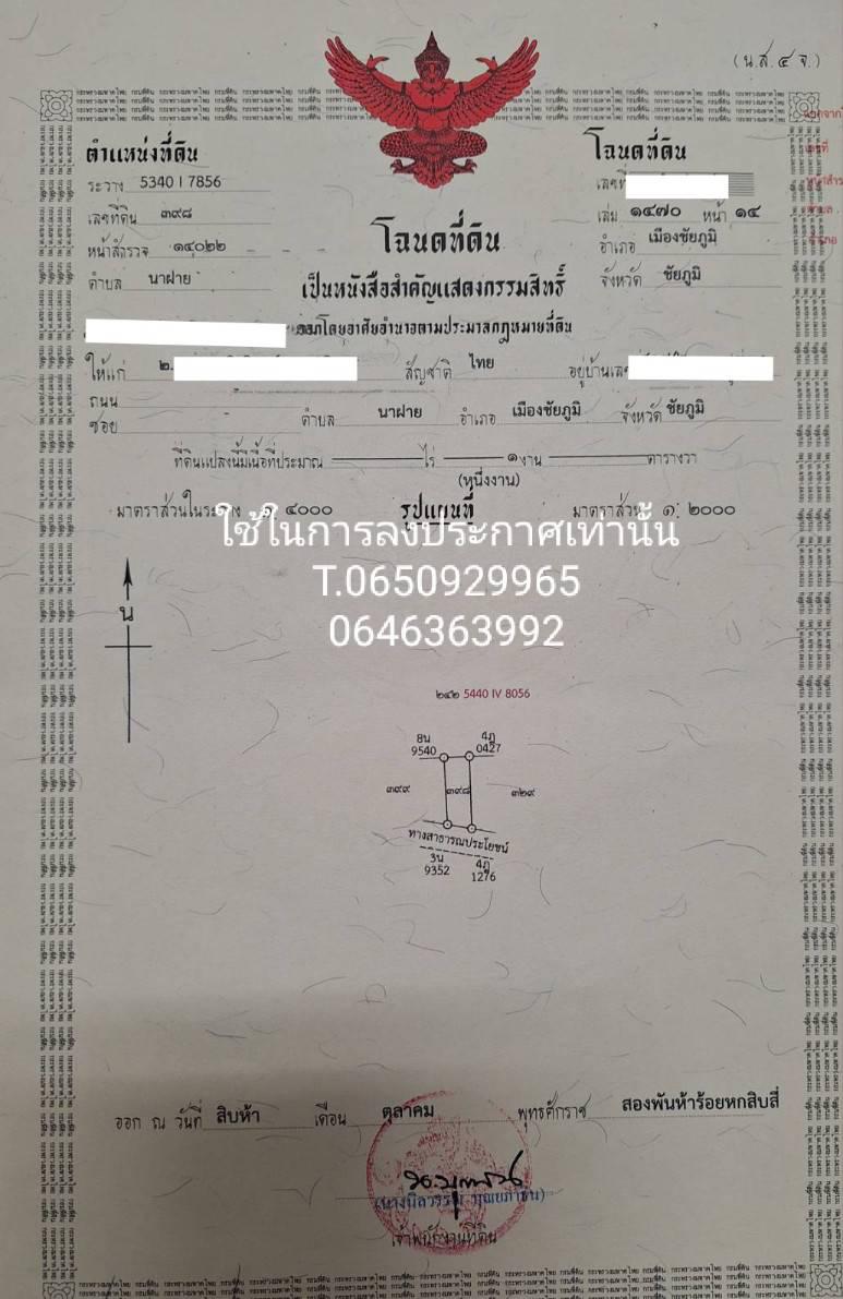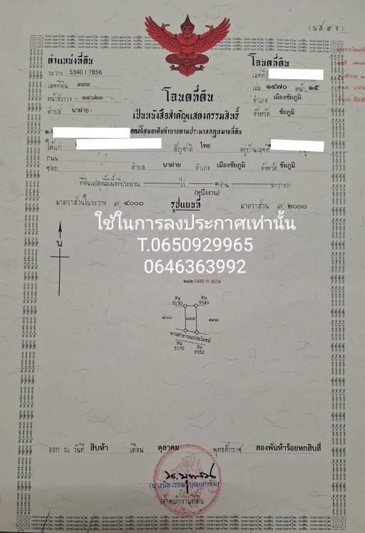 ที่ดินแบ่งขาย ตำบลนาฝาย อ.เมืองชัยภูมิ จ.ชัยภูมิ